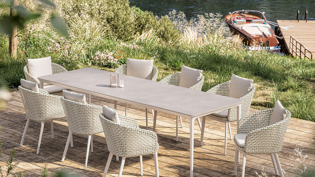 As its name suggests, the SEASHELL-NUO collection draws inspiration from the ocean. Its clean lines and airy design make it a versatile choice for any outdoor space, combining practicality with sophisticated style.