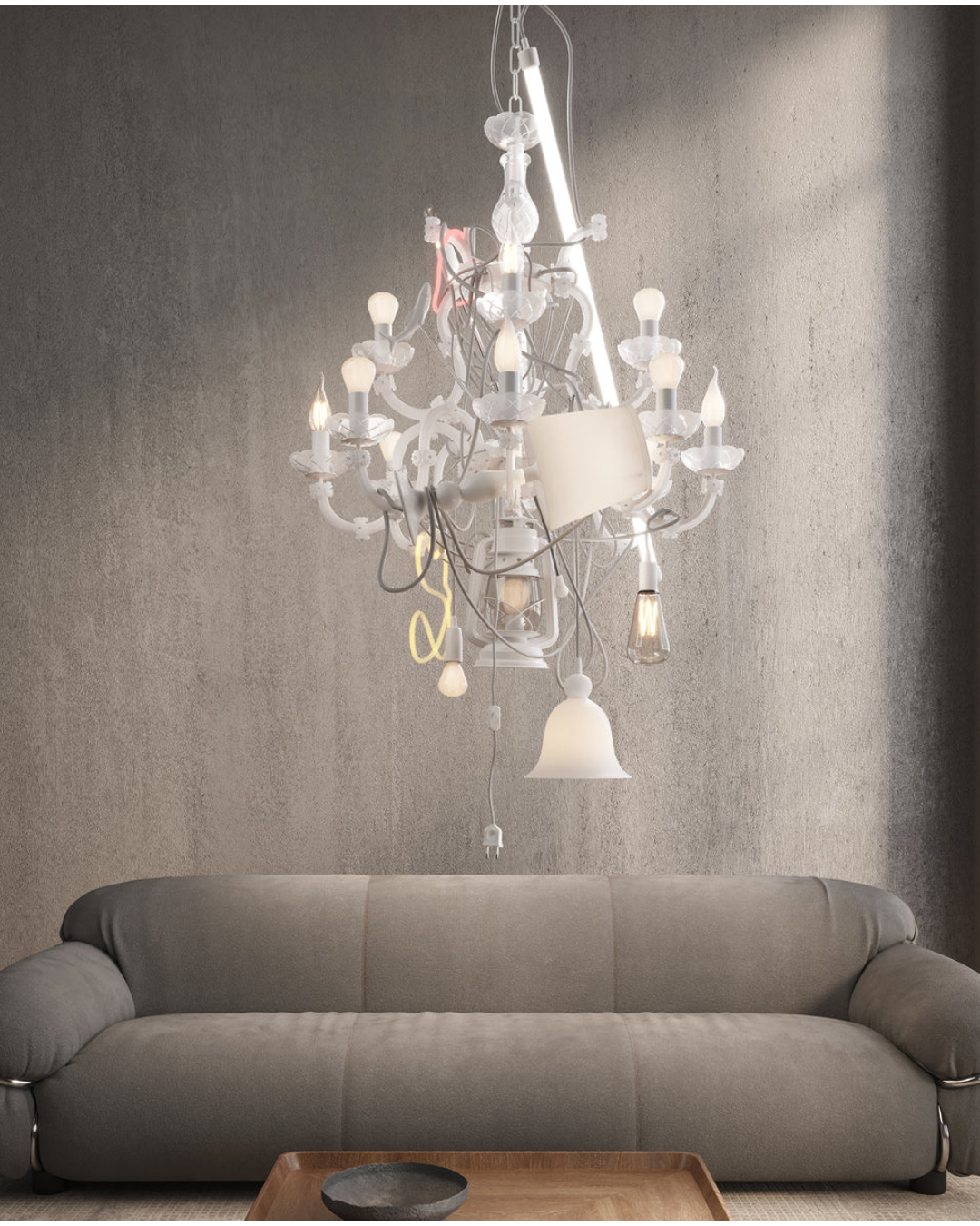 Also designed by Marcantonio, the Beautiful Mess chandelier stands out with its deconstructed form, mixing various shapes and materials. Drawing inspiration from multiple lighting styles across time, it creates a stunning visual narrative that adds a distinctive artistic touch to any space.